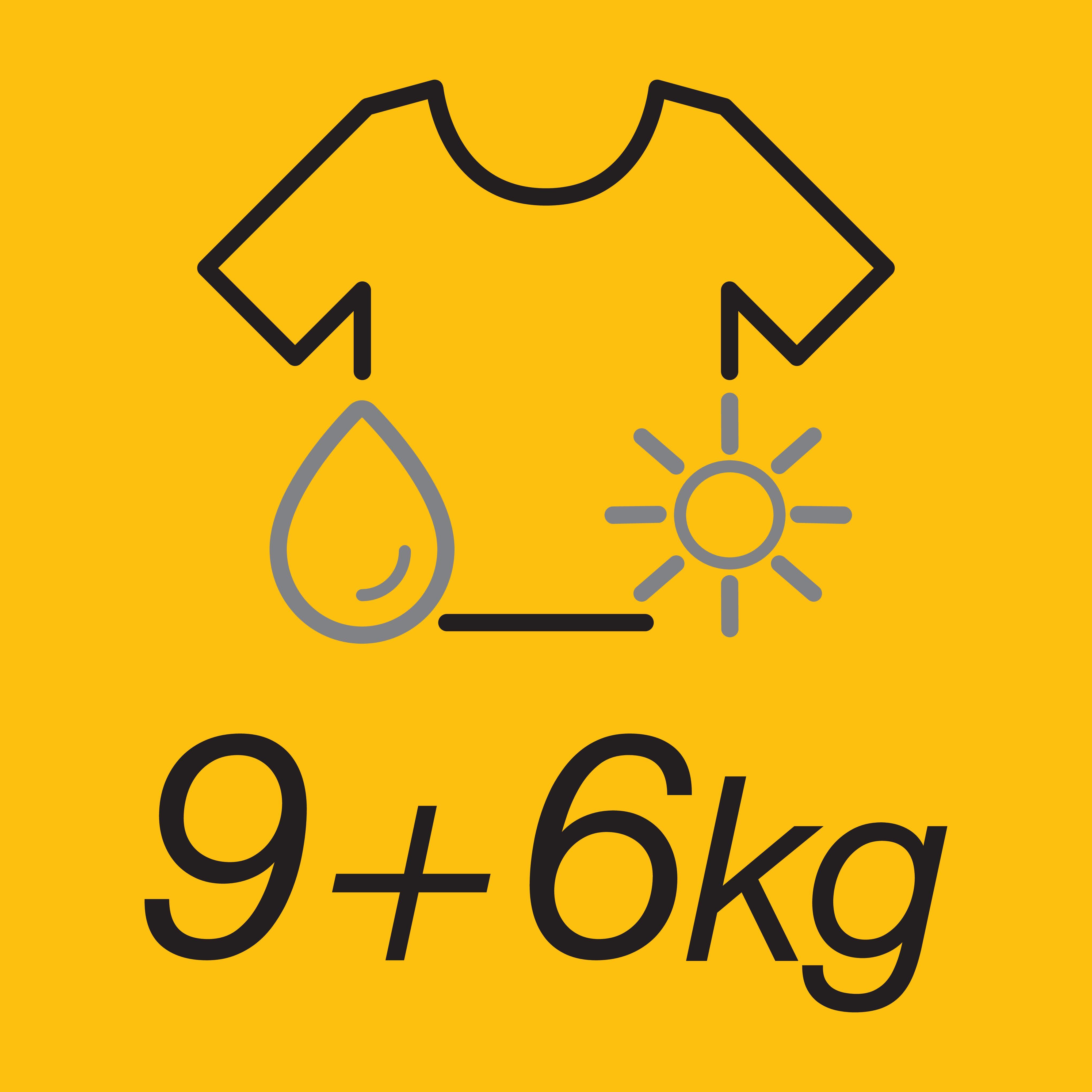 Wash&Dry (Mosás és szárítás)A Wash&Dry funkcióval egyetlen készülékkel varázsolhatja ruháit tisztává és szárazzá.