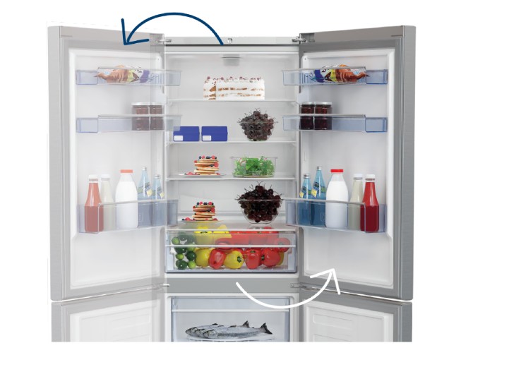 Beko B3RCNA364HXB1 No Frost alulfagyasztós kombinált hűtőszekrény, 210/106L, 59.5x66.3x186.5 cm, csiszolt ezüst szín
