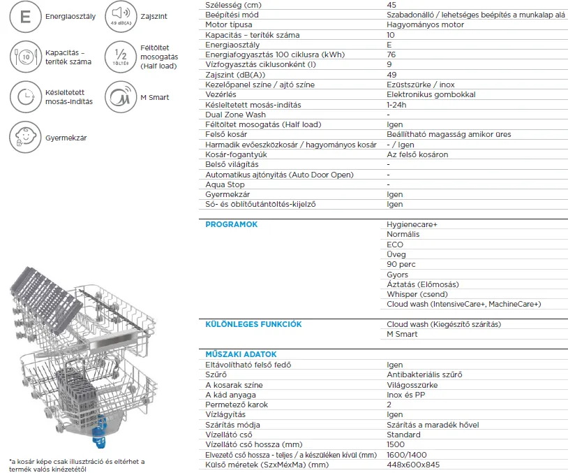 Midea MFD45S200X.2-ES 5év garancia, mosogatógép 10 terítékes, 45 cm, ezüstszürke/inox